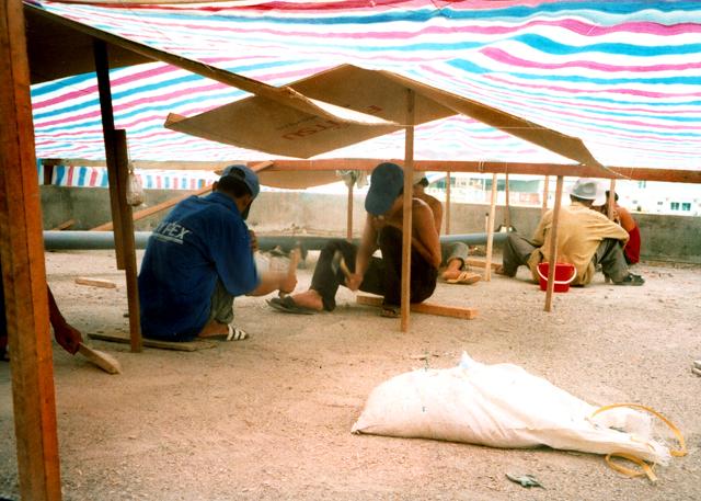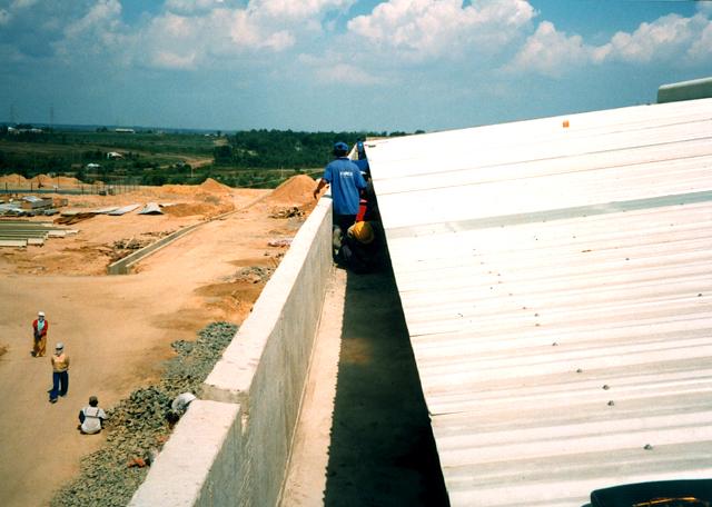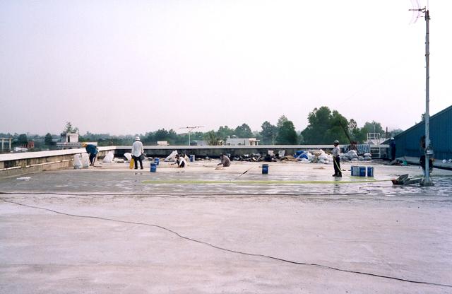 Mái nhà, dài 43 m, có nhiều vết nứt co ngót do ứng suất nhiệt. Sản phẩm chống thấm trước...